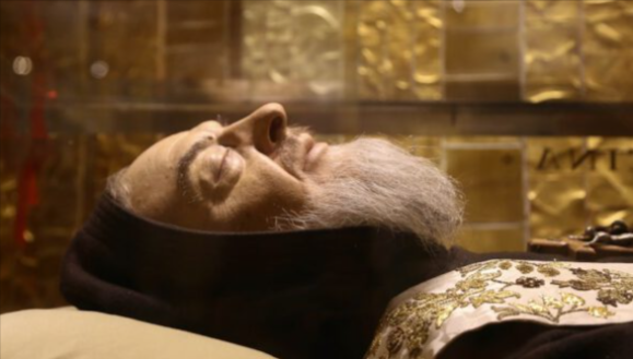 El cuerpo del Padre Pío fue exhumado en 2008. Los restos mortales del fraile italiano fueron expuestos al público. En pocos meses, fueron visitados por casi 9 millones de personas. El 25 de mayo de 2010, para conmemorar el 123.º aniversario del nacimiento del santo, se llevó a Pietrelcina una reliquia extraordinaria: el hueso hioides (un pequeño hueso ubicado en la parte anterior del cuello), que se había separado naturalmente del cuerpo del Padre Pío durante la exhumación.