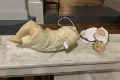 Profanam estatua del Niuño Jesús