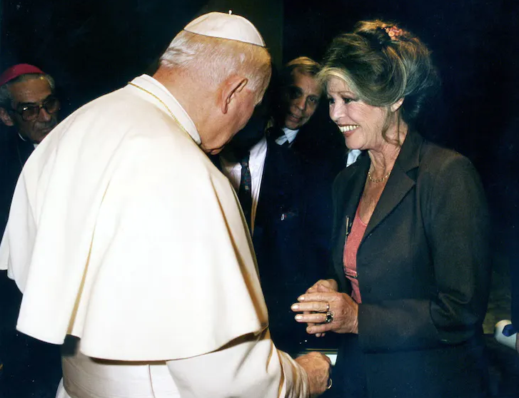 Famosa también por su activismo animalista, Bardot afirmó tener devoción por San Francisco de Asís, a quien llamó «el faro de la protección animal». También habló de su devoción por el Padre Pío, afirmando que estos santos le parecían «particularmente maravillosos, sensibles, generosos, buenos, de esos que ya casi no se ven». Sin embargo, afirmó no sentir «ninguna admiración» por el Papa Francisco, quien, añadió, no había hecho nada para proteger a los animales y nunca respondió a las dos cartas que le envió pidiéndole que actuara.