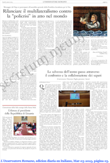 L’Osservatore Romano, edicion diaria en italiano, Mar-03-2025, página 03.