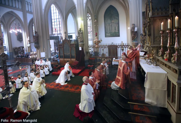 La Misa Pontifical tuvo lugar el 15 de marzo en la iglesia de Nuestra Señora de la Inmaculada Concepción en Oss, Países Bajos, parroquia de la diócesis de ‘s-Hertogenbosch, donde se celebra la misa tradicional todos los domingos. Tras haber acogido recientemente a la Fraternidad Sacerdotal de San Pedro en su propia archidiócesis, el cardenal Eijk expresó su gran deseo de celebrar allí la Santa Misa algún día.