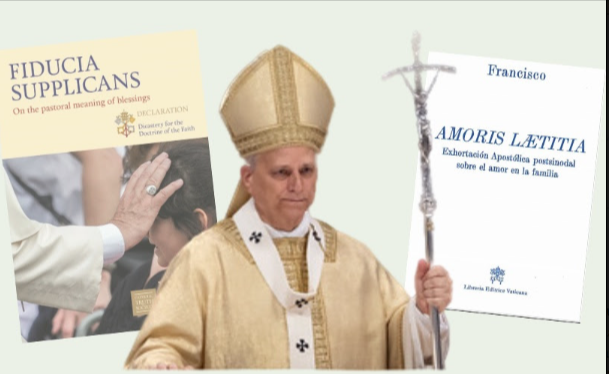- por otro, con declaraciones y gestos que legitimaron las uniones civiles homosexuales, culminando en las “bendiciones pastorales” autorizadas en la Declaración Fiducia Supplicans , del 18 de diciembre de 2023, firmada por el Prefecto del Dicasterio para la Doctrina de la Fe.