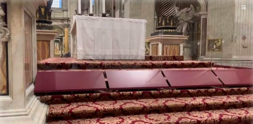 Colocan paneles alrededor del Altar Mayor de la Basílica de San Pedro