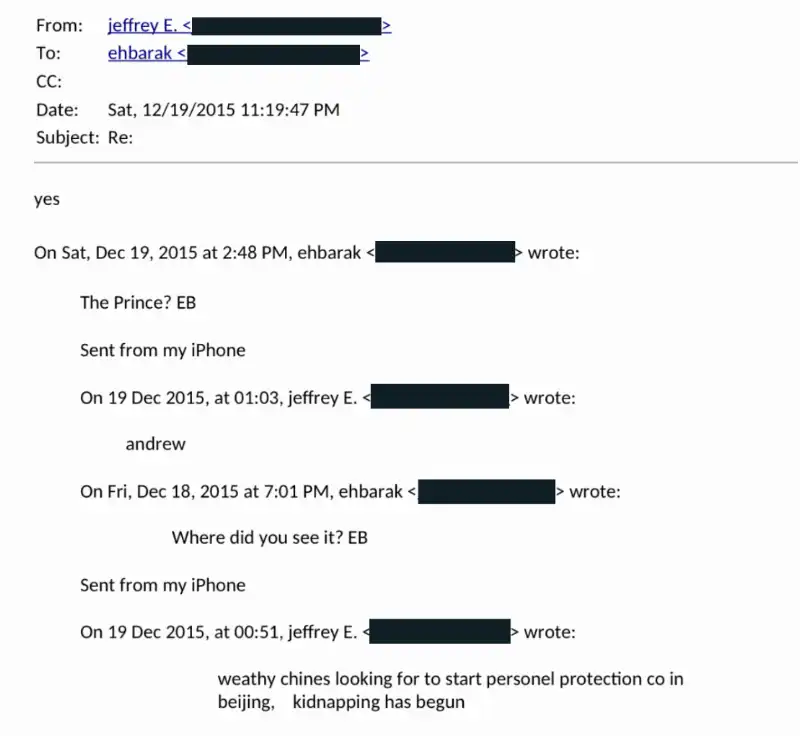 Los chinos ricos quieren crear una empresa para proteger a su personal en Pekín», le escribió el estadounidense Epstein a Barak hace diez años.