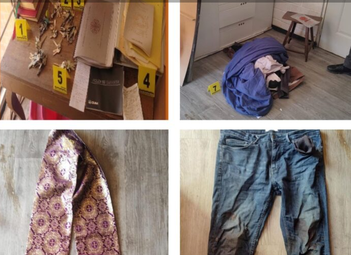 El 9 de noviembre se llevó a cabo una técnica de investigación de cateo en el referido domicilio y fueron localizados ropas de la víctima, pertenencias personales, una estola de sacerdote, objetos punzocortantes y contusos, así como rastros hemáticos observados a través de la prueba “blue star”.