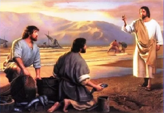 Y, mientras pasaba junto al mar de Galilea, vio a Simón y a Andrés, el hermano de Simón, que echaban las redes en el mar, pues eran pescadores. Y les dijo Jesús: