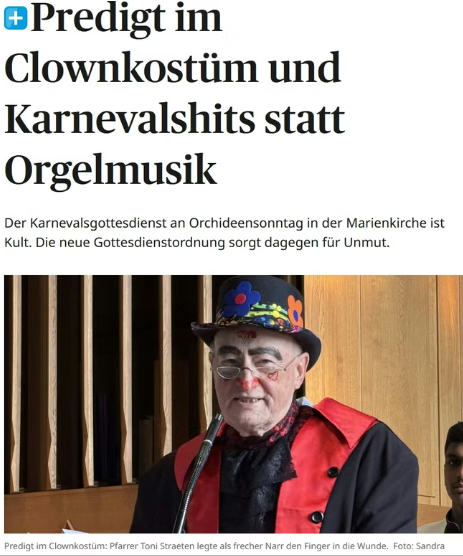 El domingo pasado, el reverendo Toni Straeten celebró una eucaristía de carnaval en la iglesia St Marien de Düren, diócesis de Aquisgrán, en Alemania.