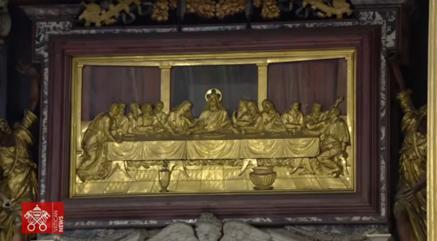 Al final de su homilía, el Santo Padre afirma que en la tarde del Jueves Santo recordamos la institución de la Eucaristía y del Orden sagrado, y el vínculo intrínseco entre los dos sacramentos representa la entrega perfecta de Jesús, Sumo Sacerdote y Eucaristía viva por los siglos.