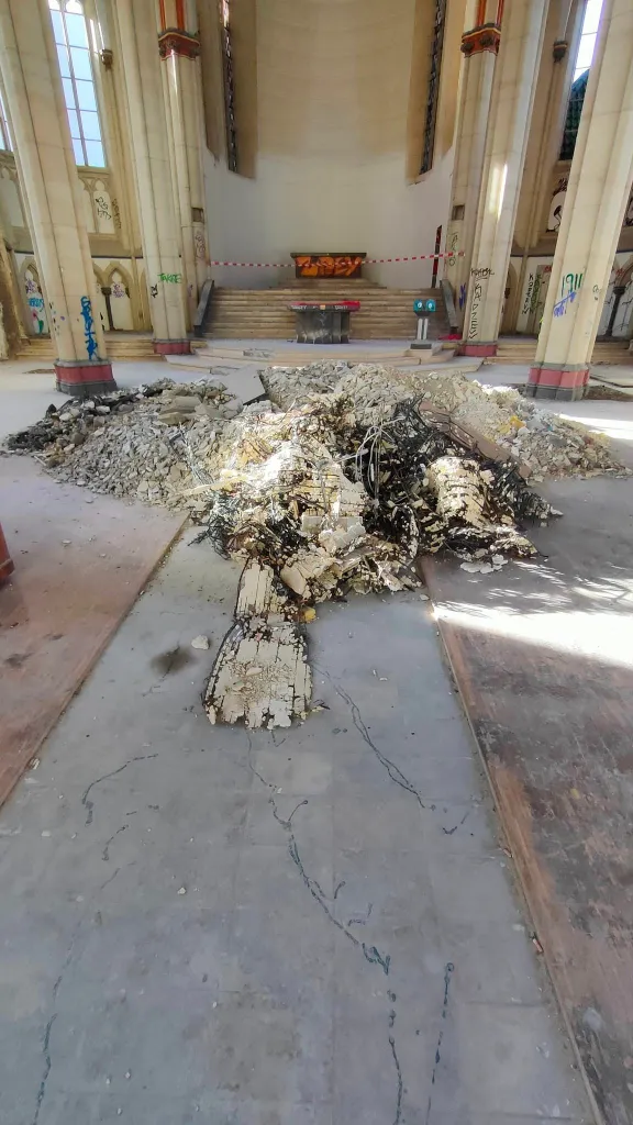 Y ahora, los escombros de la construcción también están cambiando el aspecto sombrío de la iglesia. «Al menos la están reutilizando y no demoliendo», se alegra un residente de Bochum.