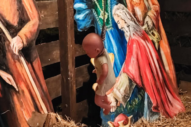 Unos autores desconocidos colgaron por el cuello un muñeco que simbolizaba al Niño Jesús.