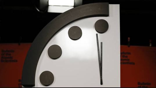 El Boletín de los Científicos Atómicos ajustó su Reloj del Juicio Final a 85 segundos antes de la medianoche, adelantándolo cinco segundos para reflejar la evaluación del grupo sobre el creciente peligro. El reloj se actualiza cada enero.