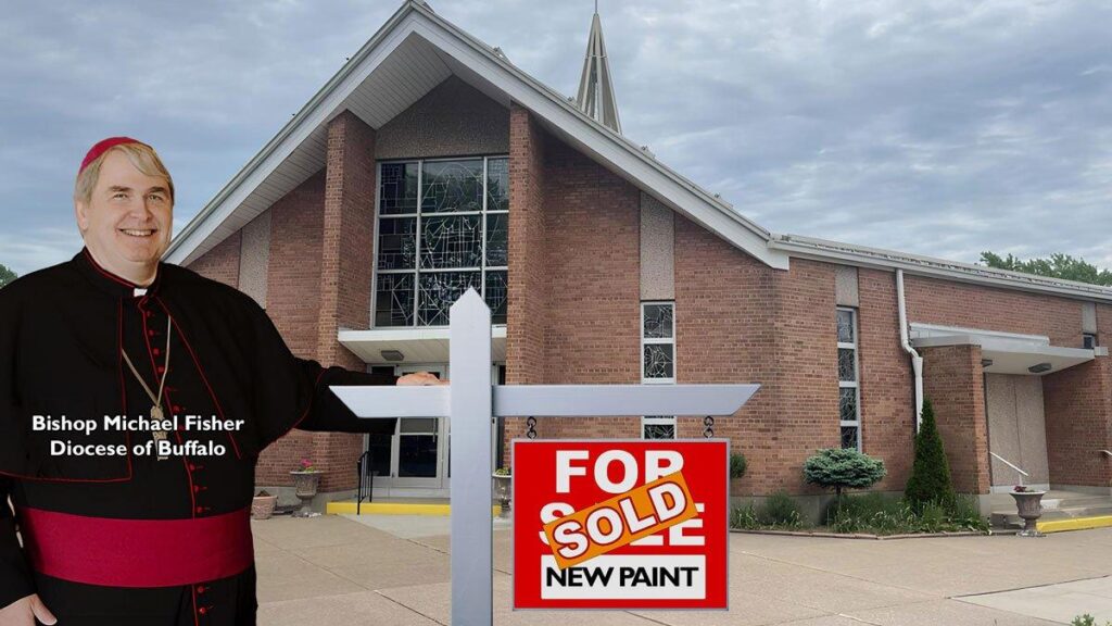 Pero casi tan pronto como se terminó, comenzaron los rumores de que nuestra iglesia estaba a punto de ser clausurada, junto con al menos otras dos iglesias en las Cataratas del Niágara. En febrero de este año, el obispo Fisher celebró la última misa en San Rafael, y el edificio se vendió a los bautistas. O, como los llamaría nada menos que san Roberto Belarmino, «herejes».En febrero de este año, el obispo Fisher celebró la última misa en San Rafael, y el edificio fue vendido a los bautistas… hizo que los feligreses pagaran por mejoras en el edificio sin avisarles de sus planes de vender la parroquia.Tuitear esto