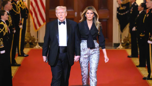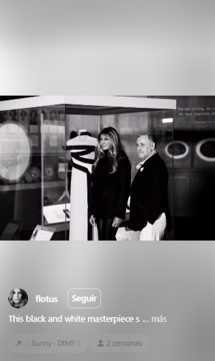 Melania Trump compartió un video el sábado con fotos de un vestido que lució en la segunda investidura de su esposo el año pasado, el cual donó a un museo. La publicación estaba ambientada en el éxito de Bad Bunny, «DtMF».