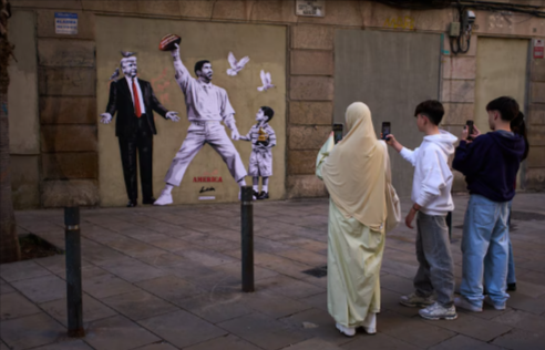 Donald Trump y Bad Bunny juntos en un mural de grafiti. (Imagen: AP/Emilio Morenatti)