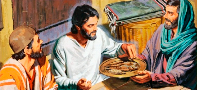 Ellos le ofrecieron un trozo de pez asado. Él lo tomó y comió delante de ellos. Y les dijo: