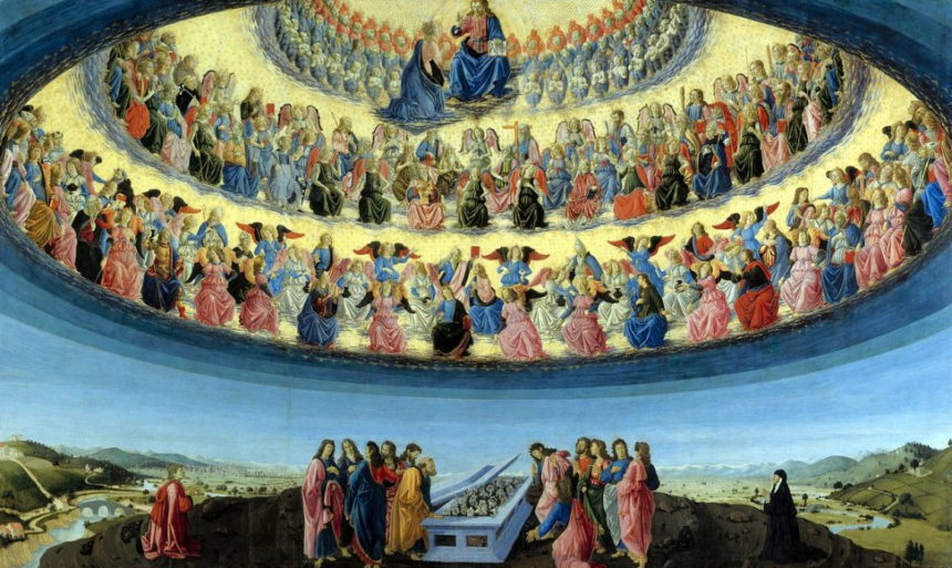 María Asunta al Cielo es en realidad la Iglesia, o más bien, un signo profético de la Iglesia que está en la gloria; que ha sido llevada a Dios; que ya es la Iglesia de los salvados, que habita en la gloria, es decir, en el Cielo con Dios.