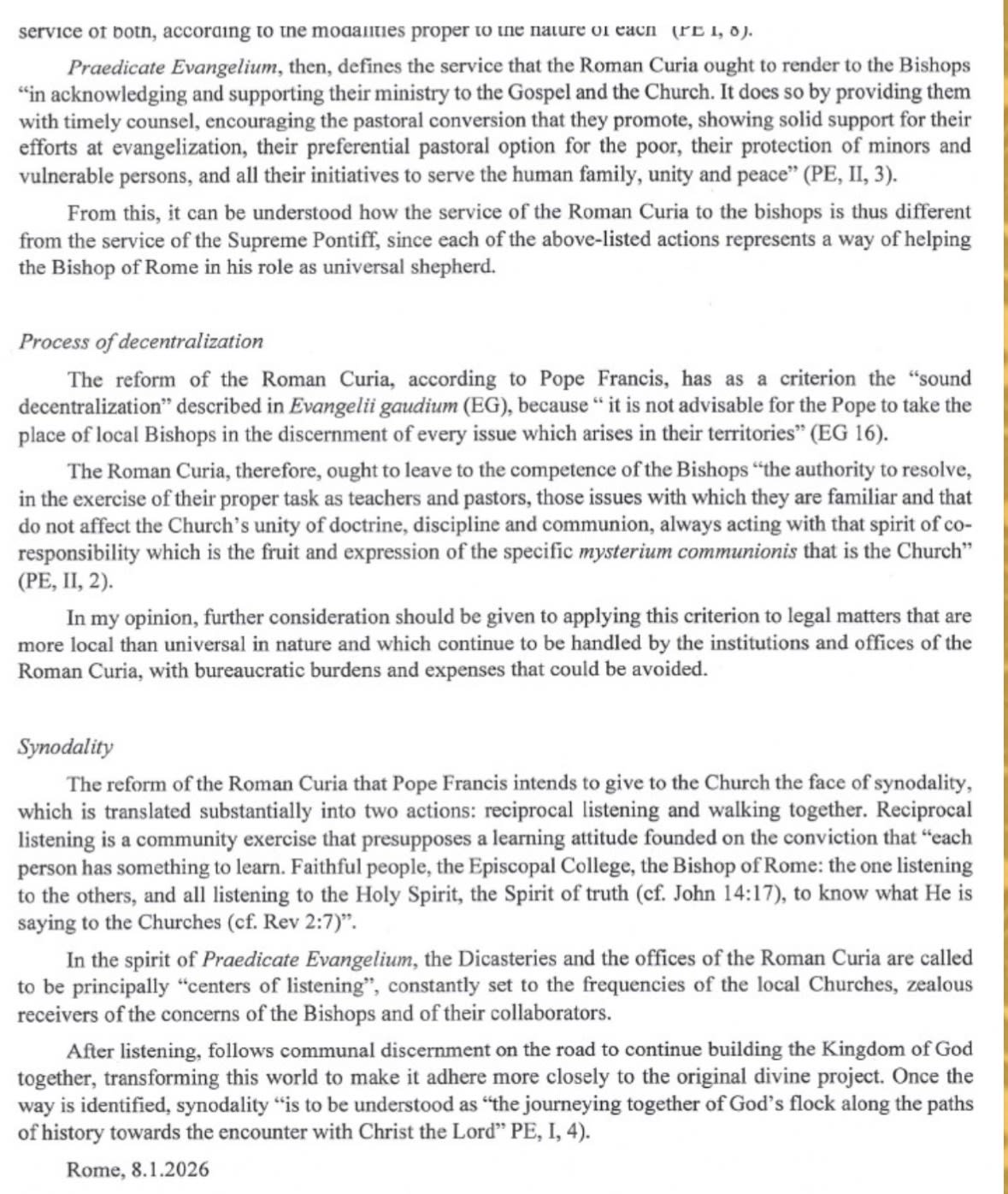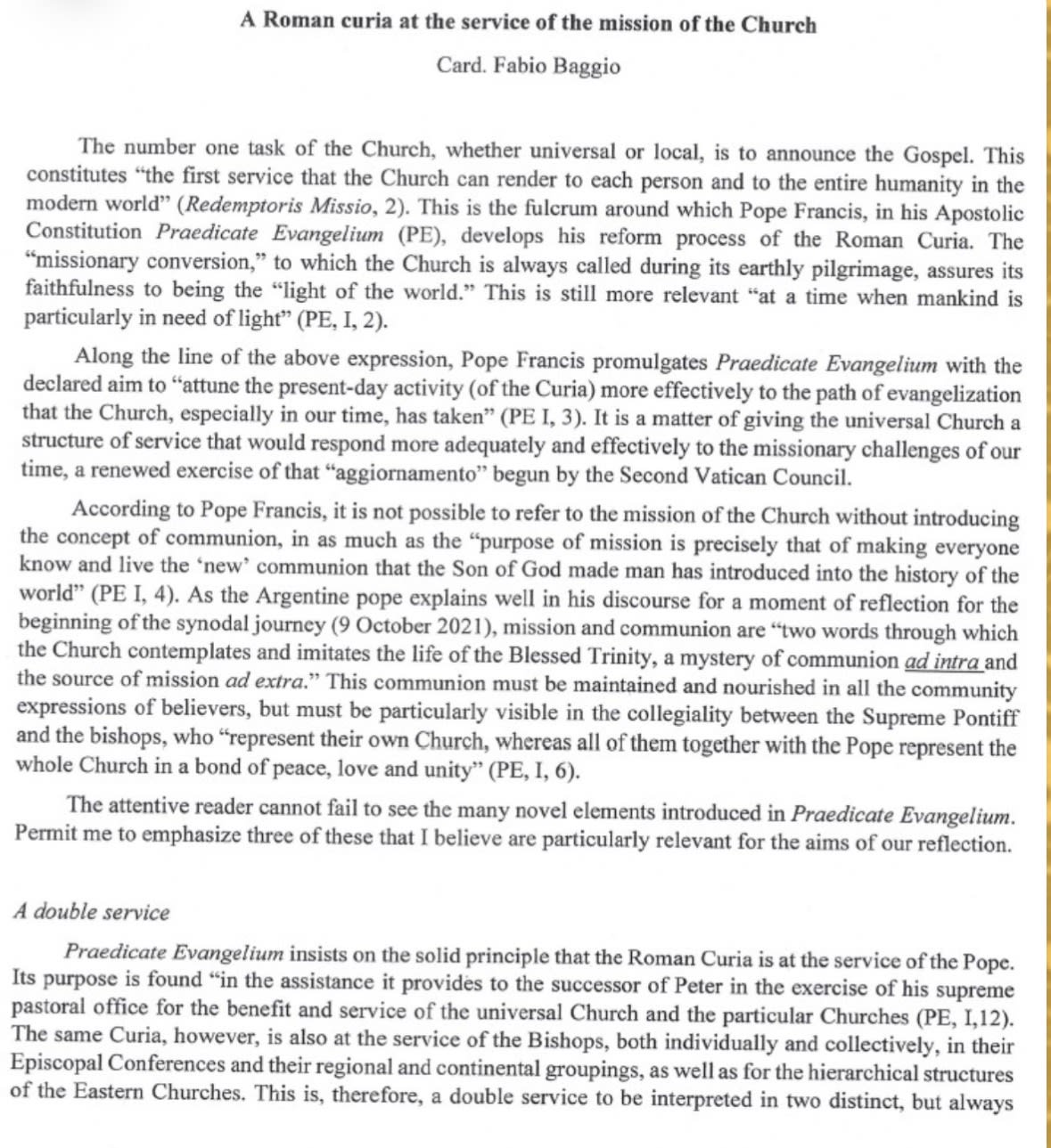 Baggio admite que Praedicate Evangelium introduce «muchos elementos novedosos». Considera la novedad como una característica: