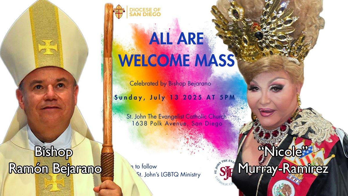 En julio de 2025, el ahora obispo Bejarano celebró esa misa y permitió que un conocido activista LGBT, drag queen, hablara en el ambón. ¡Que así sea! El ambón es donde la Iglesia lee la Palabra de Dios y predica a Cristo crucificado. En el nuevo régimen, es donde un travesti obtiene privilegios de micrófono para burlarse de la creación divina del hombre y la mujer.