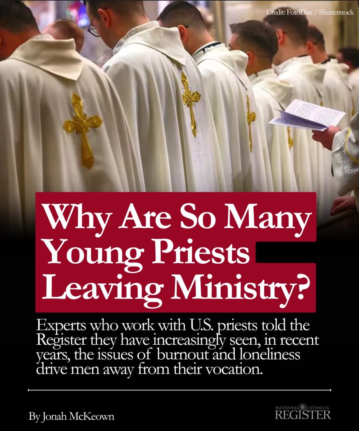 En el National Catholic Register, finalmente se admite que un número preocupante de sacerdotes jóvenes abandonan el ministerio. El artículo de Jonah McKeown pregunta por qué tantos se alejan y destaca el agotamiento, la soledad y la falta de fraternidad.