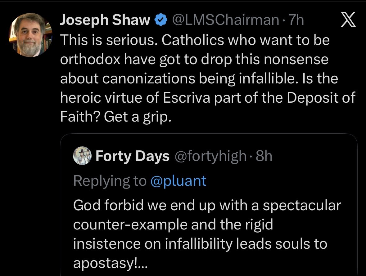 Una figura destacada del tradicionalismo, Joseph Shaw, aprovechó la ocasión para argumentar en contra de considerar las canonizaciones como infalibles, planteando la cuestión como algo ajeno al «Depósito de la Fe».