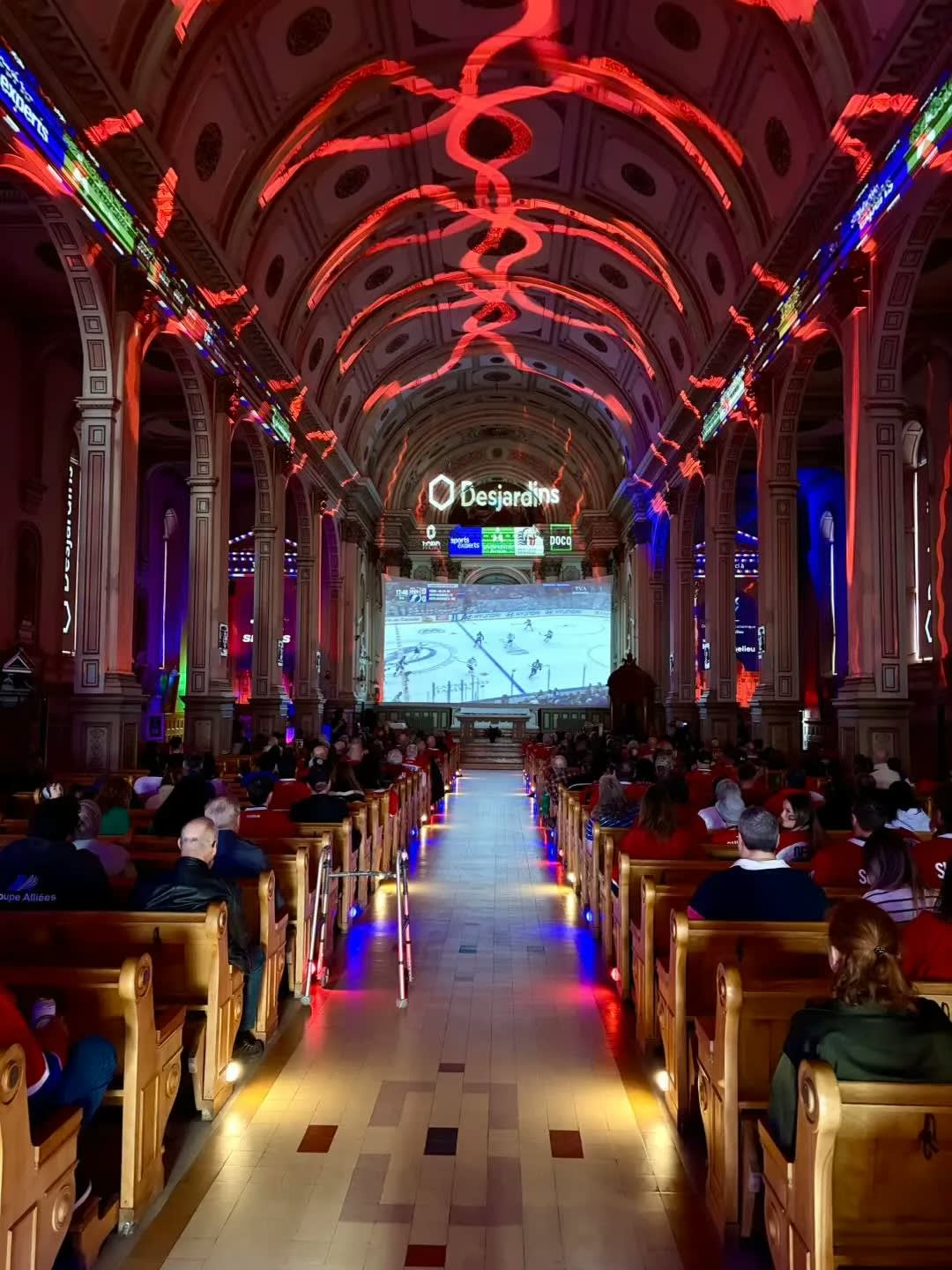 - Una catedral en el este de Canadá organiza una fiesta pública para ver un partido de hockey con luces, comida, bebidas y proyección en pantalla gigante.