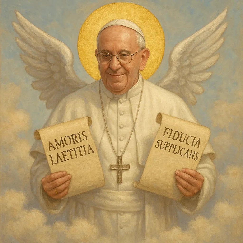 - Y no pasen por alto la lección más importante. Los mismos clérigos que les dicen que Francisco ya está en la gloria siguen bendiciendo la perversión, marginando el rito romano, organizando vigilias a favor de la diversidad sexual y convirtiendo los templos en teatros sociales.