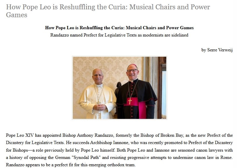 - Randazzo es promocionado como restaurador a pesar de su historial sinodal,