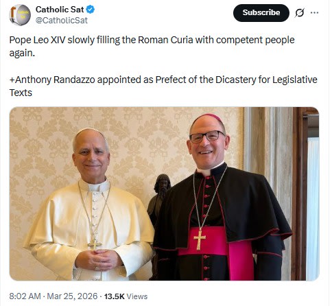 - León XVI lo nombró oficialmente para el Comité de Textos Legislativos el 25 de marzo de 2026.