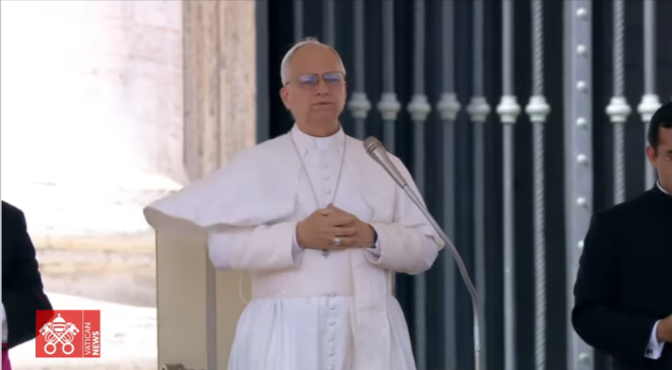 Festiva fue la acogida que le dispensaron al Papa las 35.000 personas reunidas en la Plaza de San Pedro para la cita del miércoles. El Papa León intentó saludar a todos con una larga vuelta en el papamóvil antes de iniciar su meditación.