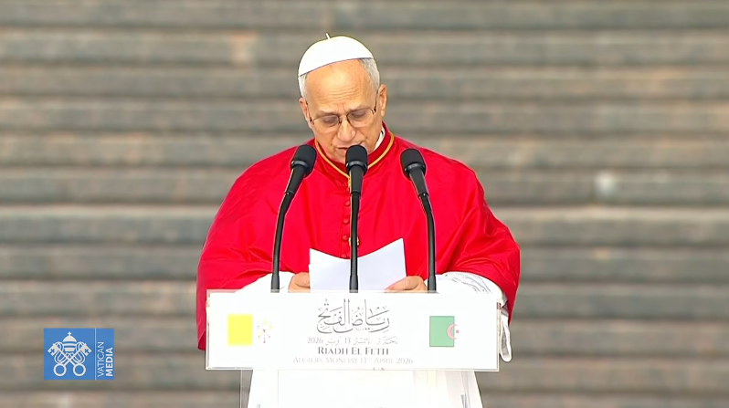 - El 13 de abril, el Santo Padre partió de Roma por la mañana hacia Argel. Recibido en el aeropuerto Houari Boumédiène, participó en una ceremonia oficial antes de visitar el Monumento a los Mártires. Posteriormente, realizó una visita de cortesía al Presidente de la República, seguida de reuniones con funcionarios del gobierno, representantes de la sociedad civil y miembros del cuerpo diplomático. Por la tarde, visitó la Gran Mezquita de Argel antes de dirigirse a un centro gestionado por las Hermanas Misioneras Agustinas en Bab El Oued. La jornada concluyó con un encuentro con la comunidad católica en la Basílica de Nuestra Señora de África.