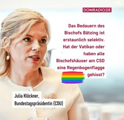 El jefe de la Conferencia Episcopal Alemana, en efecto, había calificado de «lástima» que ella no hubiera izado la bandera arco iris en el Reichstag durante el Christopher Street Day.