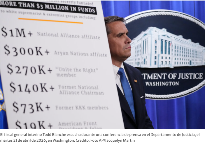 El martes, el Southern Poverty Law Center fue acusado formalmente de fraude federal, alegando que pagó indebidamente a informantes para infiltrarse en grupos extremistas sin revelar dichos pagos a los donantes, según declaró el fiscal general interino, Todd Blanche.