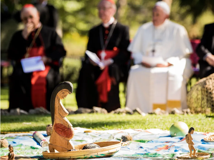 - A los fieles que protestaron se les dijo que las figuras no eran ídolos, sino que representaban la vida, la fertilidad o a los pueblos amazónicos.