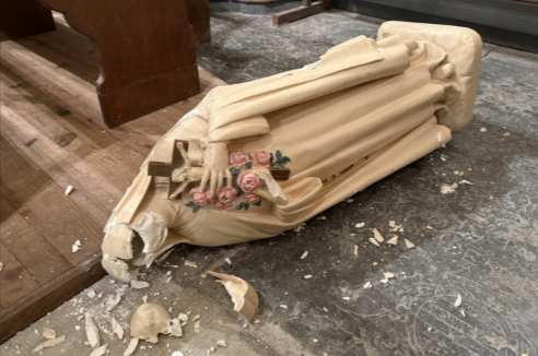 Los feligreses de Montcenis, en Saona y Loira, en Francia, están conmocionados tras la profanación de su iglesia. Dos estatuas, las de Santa Teresa de Lisieux y el Sagrado Corazón de Jesús, fueron arrojadas al suelo y destrozadas deliberadamente el 5 de noviembre.