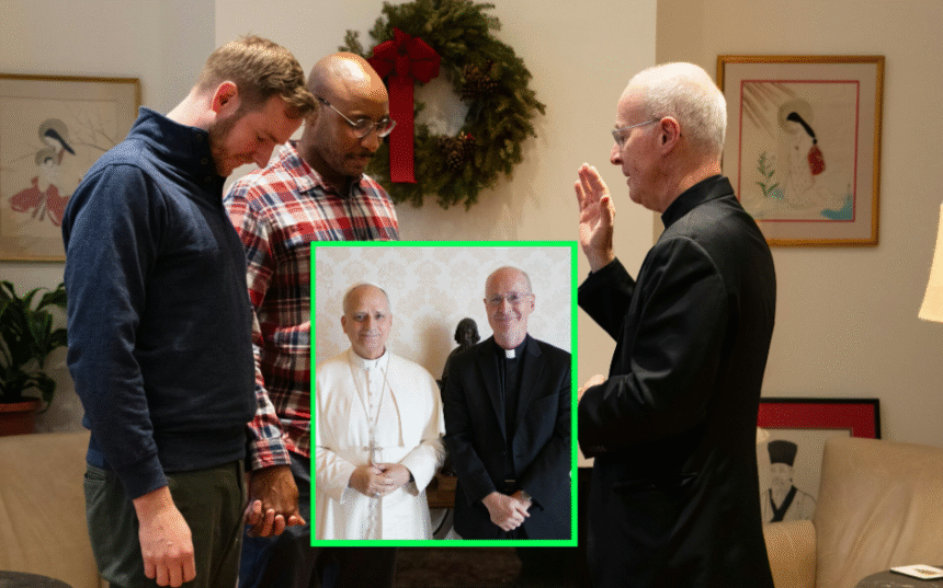 – Cuando el Papa Francisco «permitió» las «bendiciones» para homosexuales, el P. Martin lo describió como «un gran paso adelante en el ministerio de la Iglesia para las personas LGBTQ», y al día siguiente bendijo a dos homosexuales.