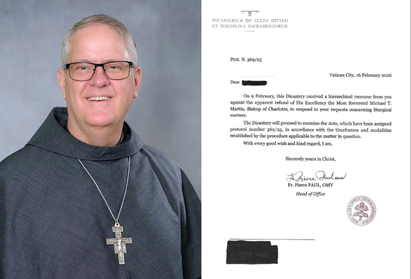 El Dicasterio para el Culto Divino del Vaticano ha acusado recibo de un «recurso jerárquico» presentado contra la negativa del obispo Michael Martin de Charlotte, Carolina del Norte, a responder a las peticiones relativas a cuestiones litúrgicas, como el impedimento para comulgar de rodillas, recibir la Hostia Consagrada en la boca, ordenar el abatimiento de los reclinatorios en las iglesias…