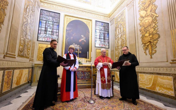 Esta mañana de lunes, al dirigirse al Arzobispo, León XIV recordó el encuentro que tuvieron Pablo VI y el Arzobispo Michael Ramsey, ocurrido sesenta años atrás. También expresó su gratitud por la labor del Centro Anglicano de Roma, fundado igualmente hace sesenta años, y extendió un saludo especial a su Director, el Obispo Anthony Ball, quien esta noche será nombrado por el Arzobispo Mullally como su Representante ante la Santa Sede.