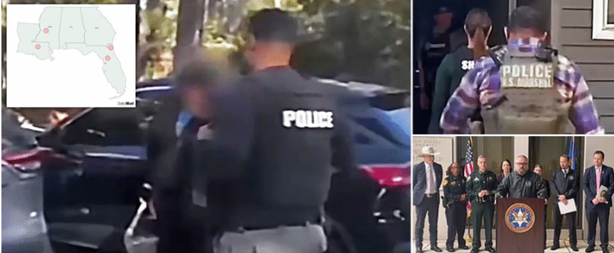 El Servicio de Alguaciles de Estados Unidos dijo que la complejidad del operativo «no se había llevado a cabo previamente en el norte de Florida hasta este mes».