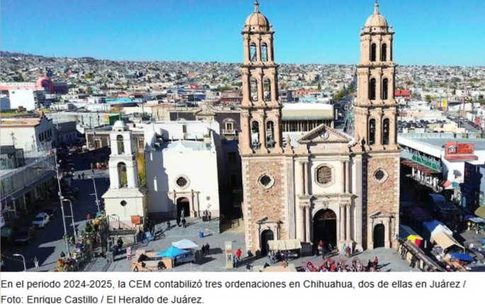 La Provincia Eclesiástica de Chihuahua, que abarca seis Diócesis, aportó en el 2025 tres nuevos sacerdotes a la vida religiosa católica de esta entidad, según un recuento nacional de la Conferencia del Episcopado Mexicano (CEM).