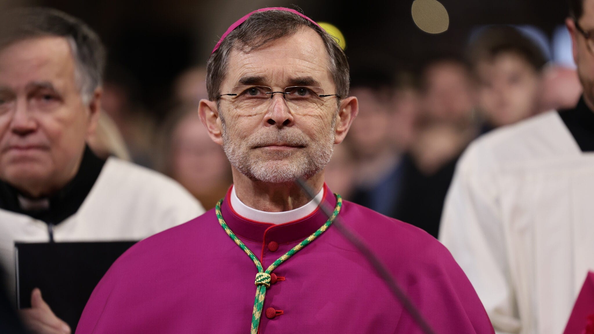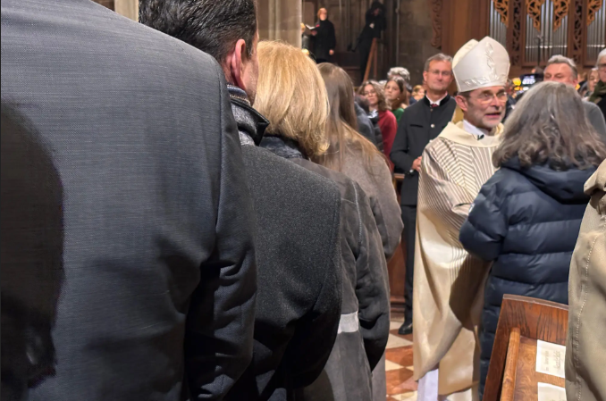 A continuación, todos los obispos oficiaron una oración de consagración para su nuevo colega, quien, mientras tanto, se arrodilló ante un Evangelio abierto, sostenido por un sacerdote, un diácono, un asistente pastoral y un profesor de religión. El solemne Amén de todos los presentes confirmó la oración de los obispos y la convirtió en la oración común de la Iglesia: “¡Así sea!”.