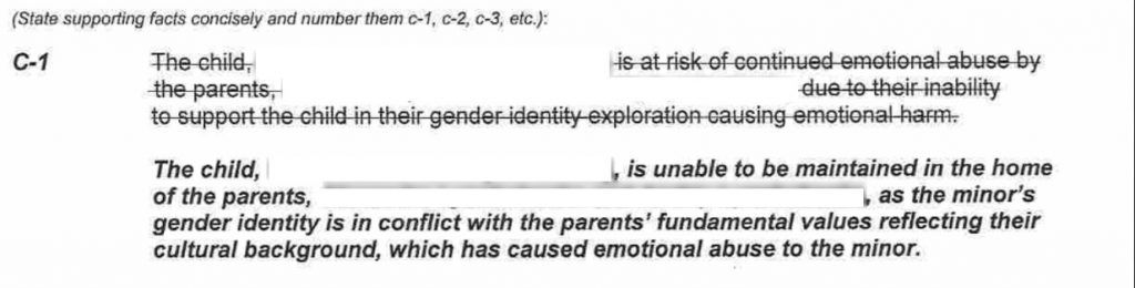 - Maya exigió que la colocaran en un hogar de acogida, diciéndoles a sus padres que tendría más fácil acceso a hormonas y cirugías si estaba bajo custodia estatal.