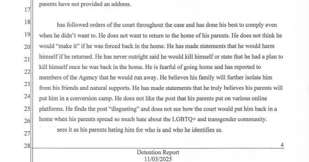 Como resultado de recurrir a las redes sociales para solicitar ayuda en su caso, Maya les dijo a sus trabajadores sociales que sus padres están «[difundiendo] mucho odio hacia la comunidad LGBTQ+ y transgénero».