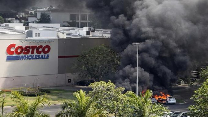 La reacción del cártel fue inmediata y coordinada. El Gabinete de Seguridad reportó 252 bloqueos en vialidades de 20 entidades federativas, con Jalisco registrando el mayor número (65). Otros estados afectados incluyen Michoacán, Guanajuato, Colima, Tamaulipas, Nayarit, Zacatecas, Sinaloa, Aguascalientes, Hidalgo, Querétaro, Estado de México, Veracruz, Puebla, Chiapas, Tabasco, Guerrero, Baja California, Nuevo León, Oaxaca y Quintana Roo. Incendios de vehículos, saqueos a tiendas de conveniencia y ataques a gasolineras se extendieron rápidamente, obligando a activar protocolos de «código rojo» en varias regiones. En Jalisco, el gobernador Pablo Lemus informó de enfrentamientos adicionales y pidió a la población resguardarse. La violencia no solo afectó infraestructuras críticas, sino que generó pánico generalizado, con suspensiones de transporte público y alertas de consulados extranjeros, como el de Estados Unidos, recomendando a sus ciudadanos no salir de casa.