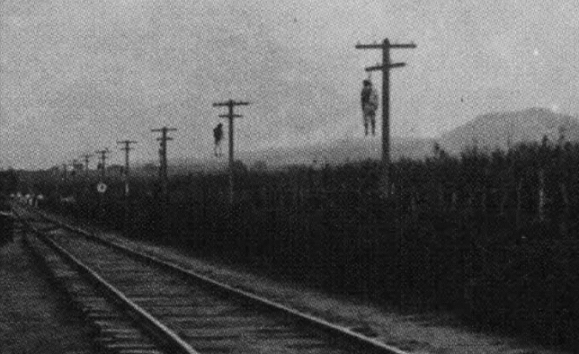 También fueron ahorcados post mortem los cinco compañeros del sacerdote, empapados en sangre, con crucifijos colgando de sus cuellos, colgando de los extremos de sus cuerdas, algunos de postes telefónicos, otros de eucaliptos.